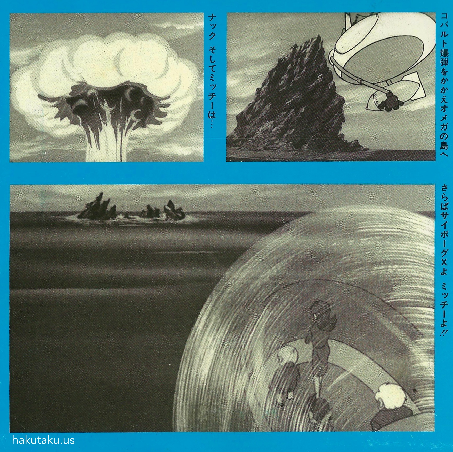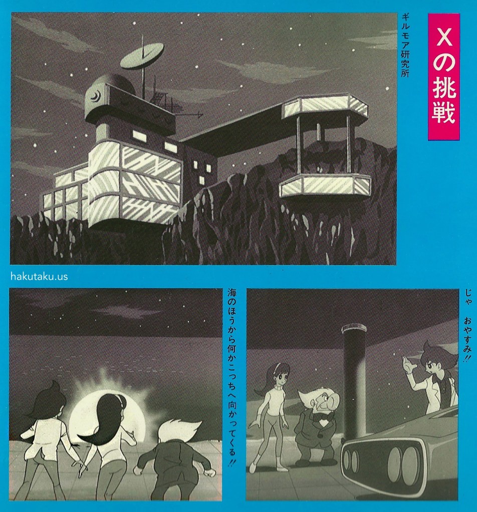 The A-side opens with the classic television theme song composed by Taichiro Kosugi with lyrics by Masahisa Urushibara. It’s performed by Tokyo Meistersinger, a choral group known for their work in animation. After the rallying introduction, we jump into “The Challenge of X,” the second episode of the television series.